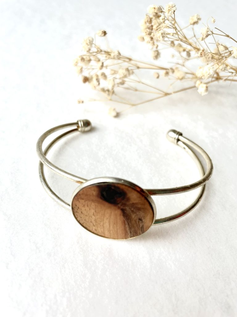 Náramek je ručně vyroben z ořechu, který rostl na naší zahradě.