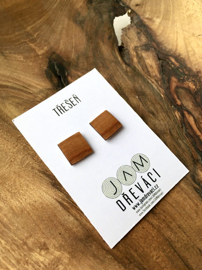 Náušnice jsou od počátku do konce ručně vyrobeny z třešně, která rostla na naší zahradě a díky puzetám s lůžkem z chirurgické oceli jsou hypoalergenní.